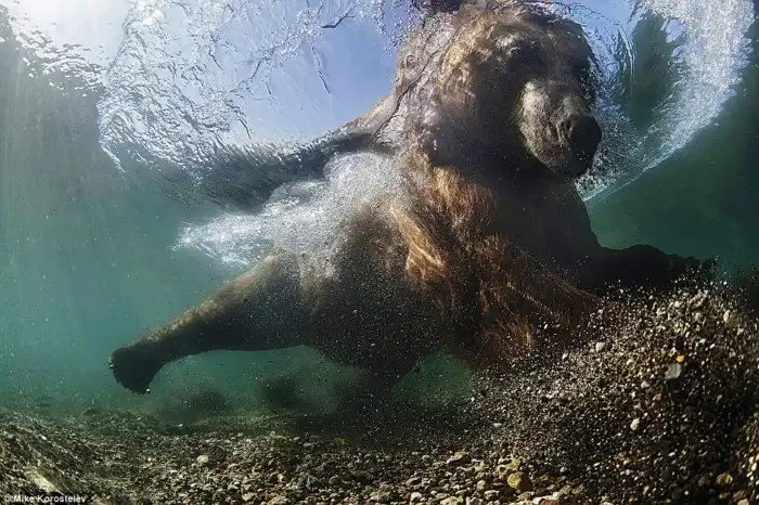 2-е место в категории «Природа». Медведь ловит рыбу в Курильском озере в России. Фотограф: Mike Korostelev.