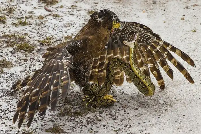 2-е место в категории «Живая природа». Схватка большого хохлатого змееяда со змеёй на острове Борнео. Фотограф: Antonius Andre Tjiu.