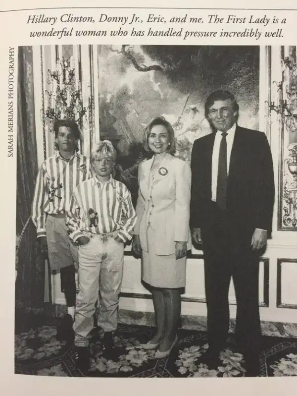 Дональд Трамп и его сыновья Дональд-младший и Эрик Трамп с Хиллари Клинтон в Белом доме в 1997 году, Фото: Sarah Merians.