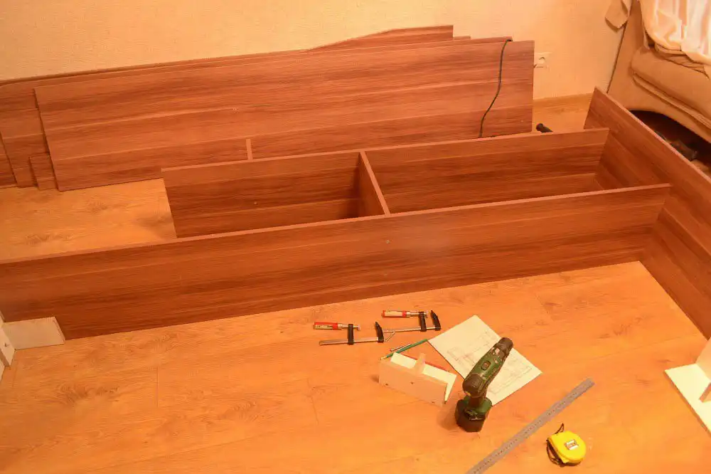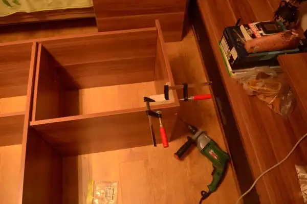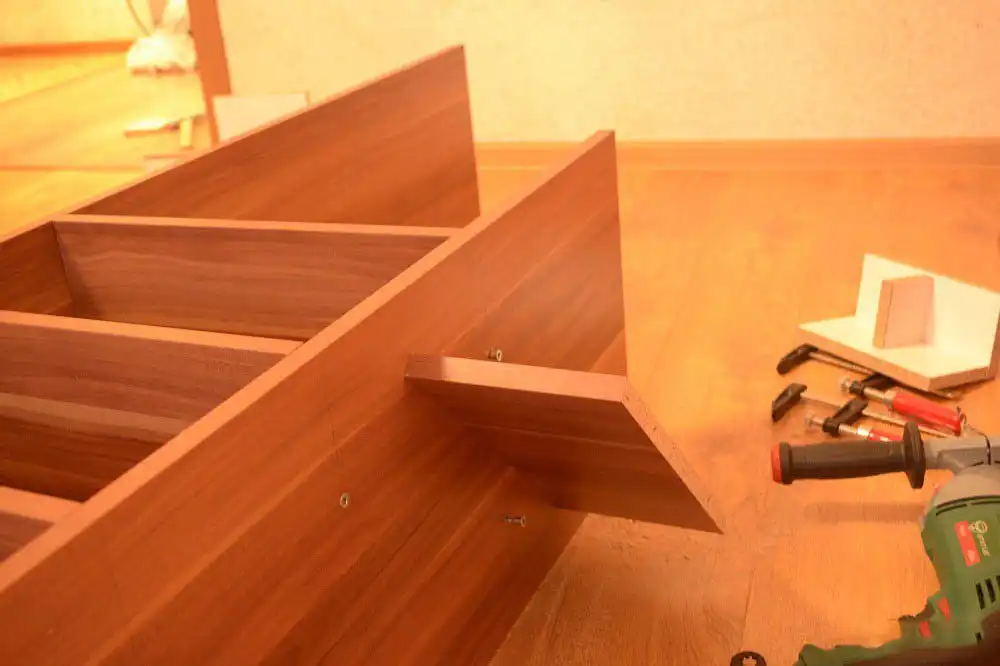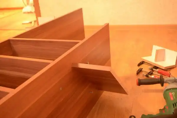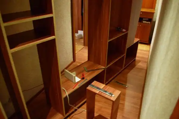 Перетаскал всё в зал, что бы собирать шкаф лёжа.