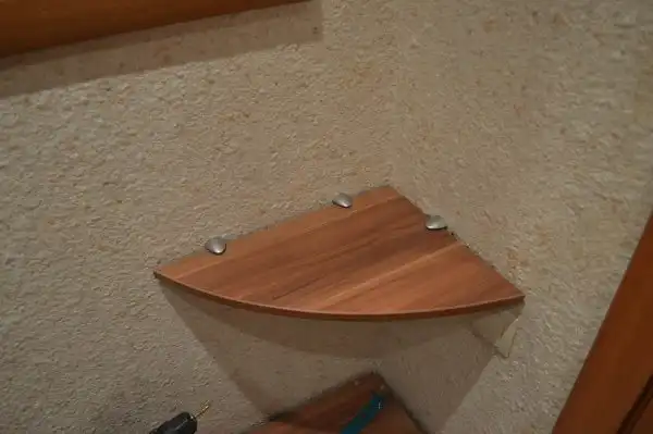 Так можно крепить конфирматами полки на одном уровне. Ну если на них нагрузка небольшой будет.