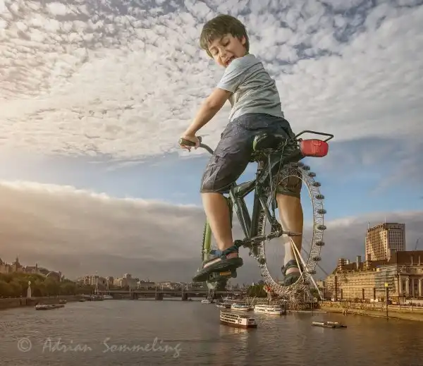 Адриан Соммелинг талантливый 49-летний фотограф, цифровой художник, графический дизайнер и веб-разработчик, живет в Гааге, Нидерланды. Адриан работает в Photoshopе и создает сюрреалистические ситуации, а его сын часто является главным героем сцен.