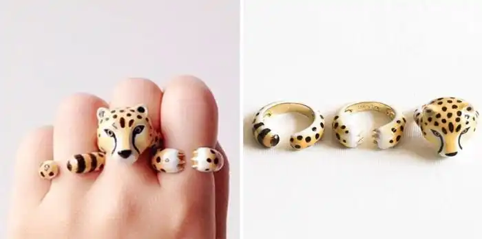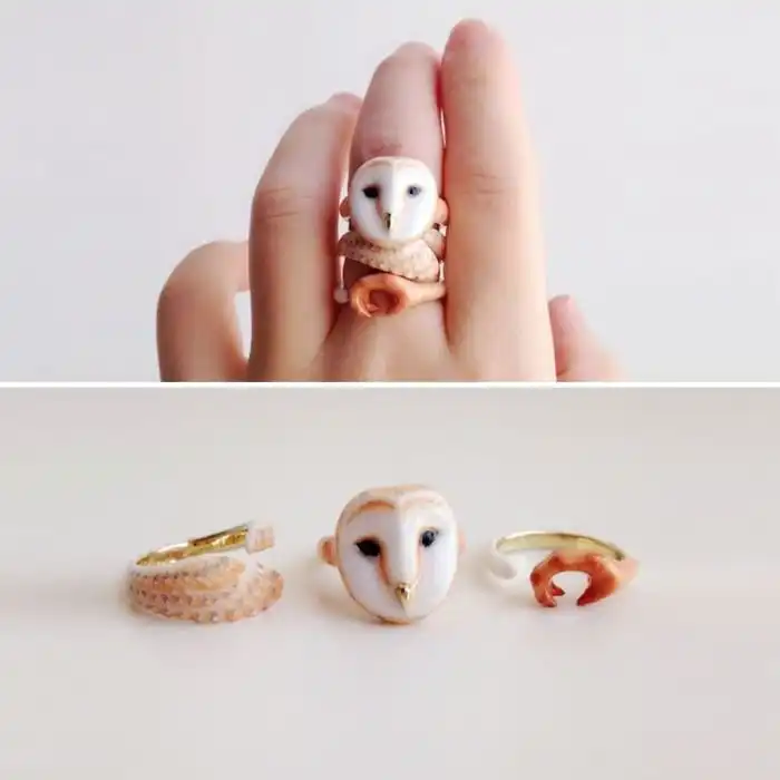 Мастер ювелирных изделий из Бангкока Мэри Лу (Mary Lou) создает великолепные кольца в виде фигурок животных. Кольца состоят из трех частей и выполнены в ярких тонах, что позволит дополнить таким оригинальным аксессуаром любой образ.