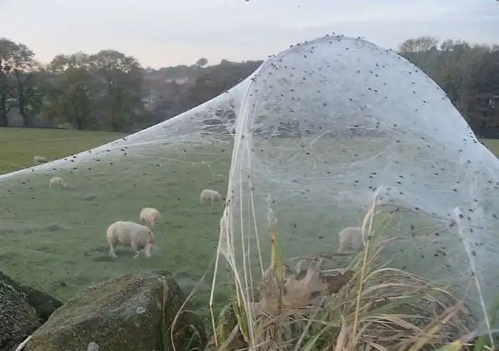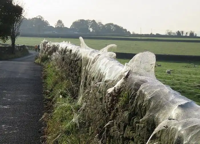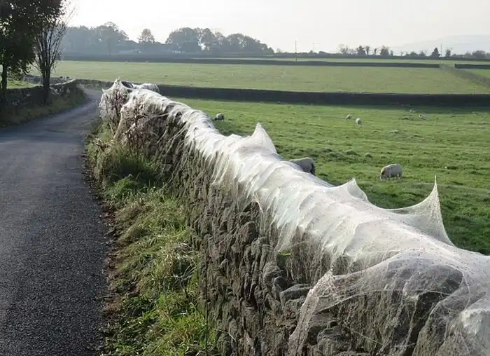 Британская деревня Трауден, что находится на востоке графства Ланкашир, переживает нашествие пауков. Всего за одну ночь пауки обволокли своей паутиной забор местной овцефермы, а теперь на паутине можно найти тысячи маленьких пауков. По словам специалистов, осень в данном регионе выдалась очень теплой, поэтому пауки до последнего момента откладывали выведение потомства.