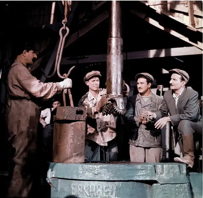 Бакинские нефтяники на снимке германского фотографа Петера Бок-Шредера, 1956: