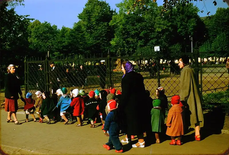 Детский сад на прогулке в Ленинграде, Ж. Дюпакье, 1956: