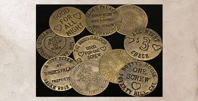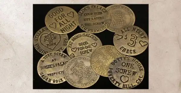 Такими жетонами расплачивались в борделях за пикантные услуги в XIX веке в США. Использование жетонов было удобным для владельцев заведений — это сводило к минимуму возможность женщин оставить себе побольше денег и раскрутить клиента в процессе.