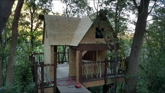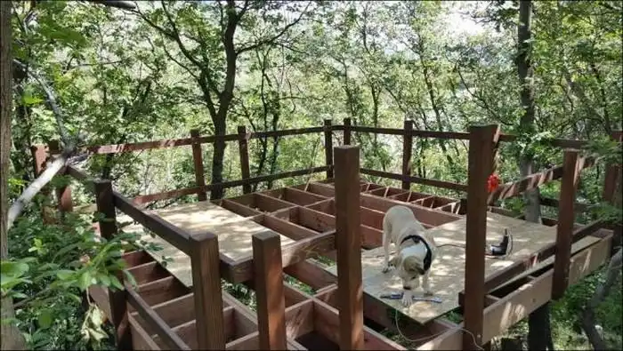 В детстве каждая компания ребят мечтает о собственном уютном домике на дереве. Мечту одной из таких компаний ребятни решили осуществить их отцы. Мужчины построили превосходный домик и поделились подробным фотоотчетом с полным процессом всех работ.