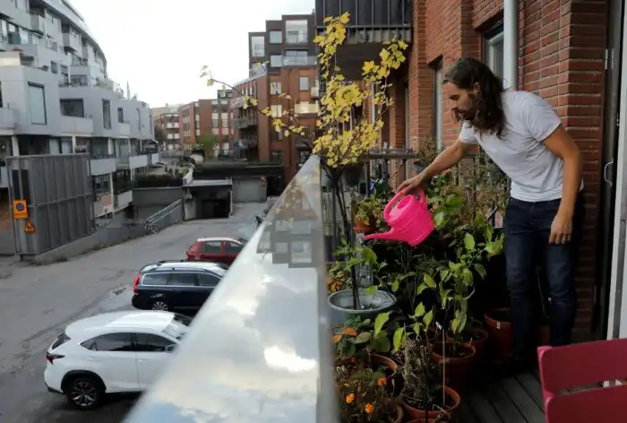 Огородник-садовод на балконе квартиры в Стокгольме, Швеция, 29 сентября 2016. (Фото Maxim Shemetov | Reuters):