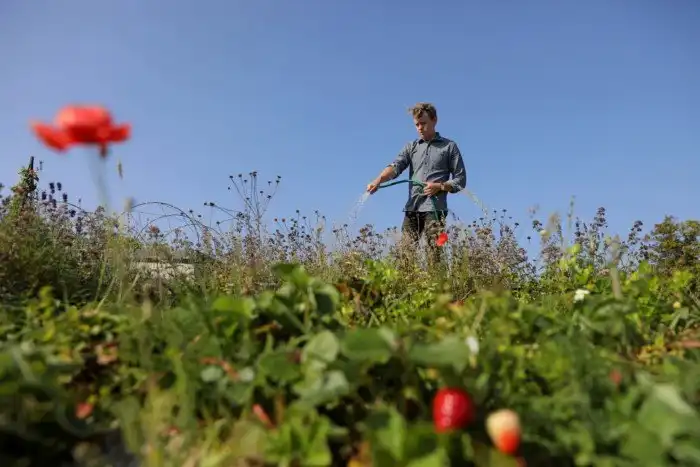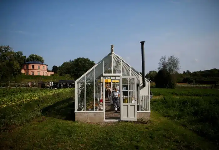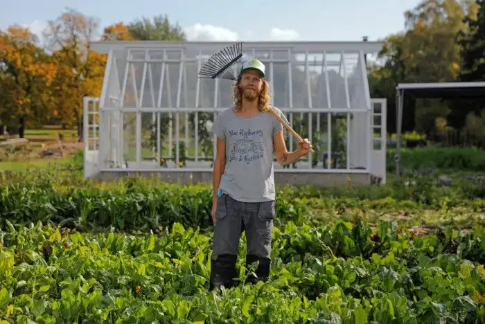 Местный огородник на фоне теплицы садового общества Rosendals Garden в Стокгольме. (Фото Maxim Shemetov | Reuters):
