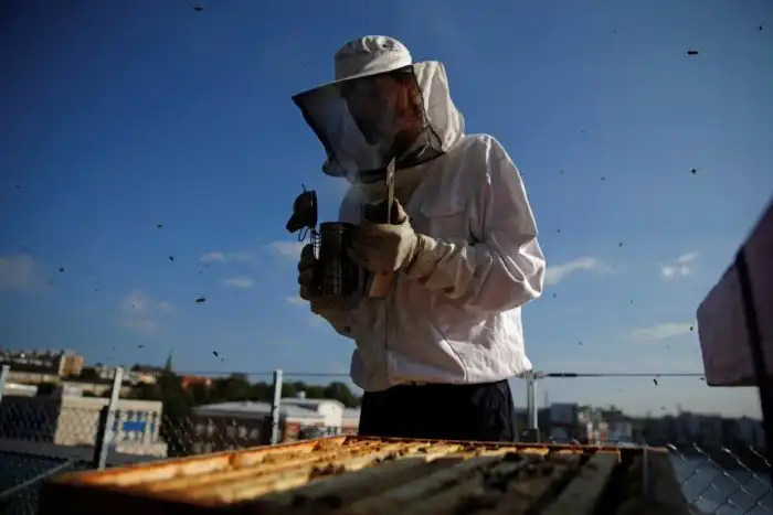 Пчеловод. Содержит пасеку на крыше дома в Стокгольме, Швеция, 13 сентября 2016. (Фото Maxim Shemetov | Reuters):