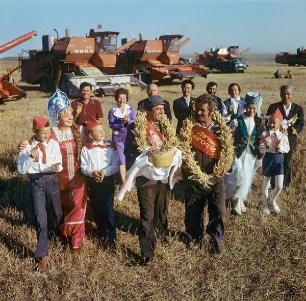1.«Так чествуют в целинном совхозе "Ленинский" передовиков жатвы» / Фото: Иосиф Будневич