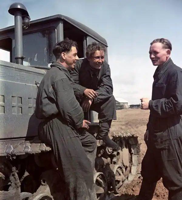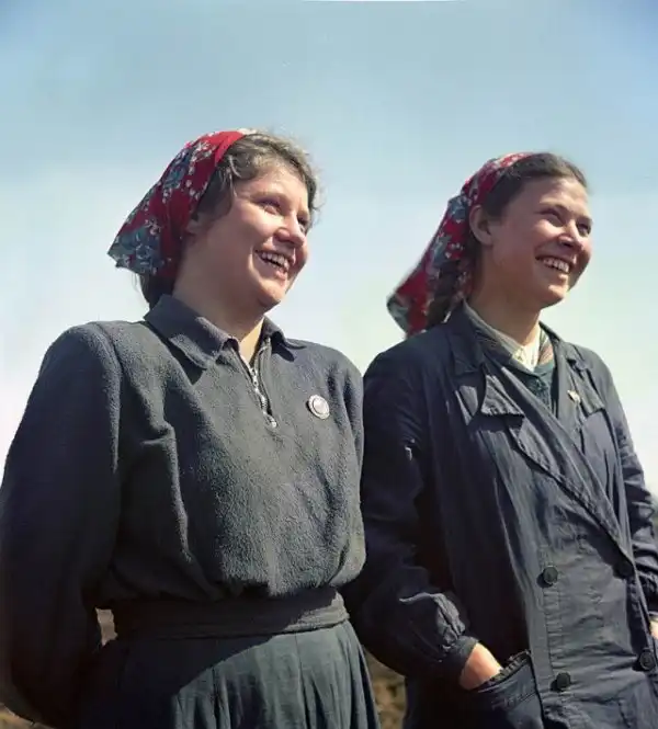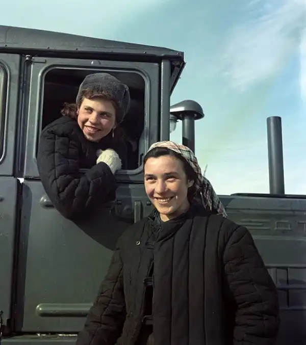 4.«Подруги-трактористки Мария Кипаренко (слева) и София Борщ приехали по комсомольской путевке осваивать целинные земли в Северный Казахстан» / Фото: Н. Драчинский