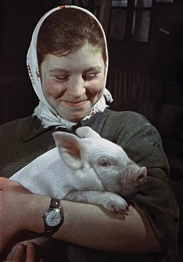 3.«Лучшая свинарка Мария Рогачева со своим питомцем» / Фото: Яков Рюмкин