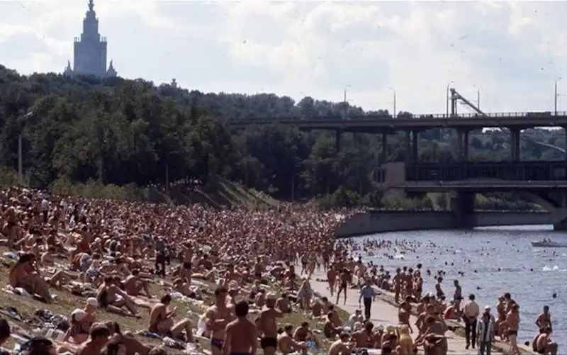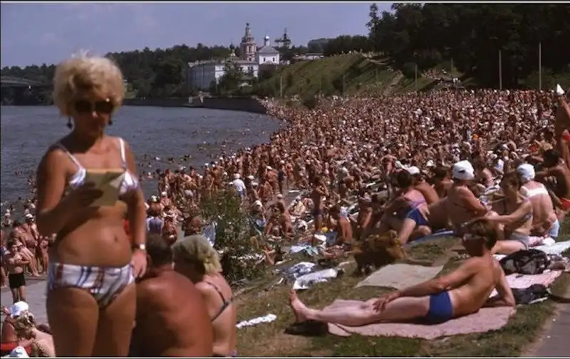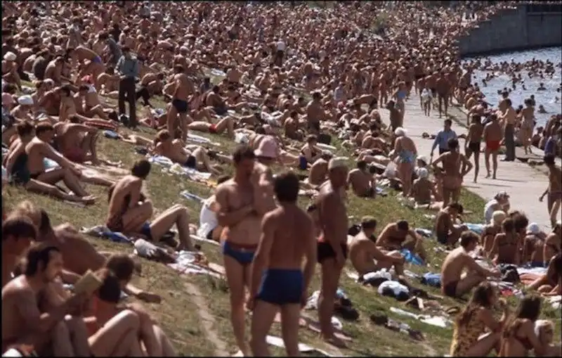Ганс Рудольф Утхофф. Мы уже показывали вам его фотосессию из Ленинграда 1965 года и рассказывали об этом известном фотографе. В 1975 году он снова побывал в СССР, на это раз в Москве, и, разумеется, с камерой. На приведенных снимках: отдых населения на Ленинских горах и Красная площадь. А год 1975-й - хороший был год, сытый даже в провинции.
