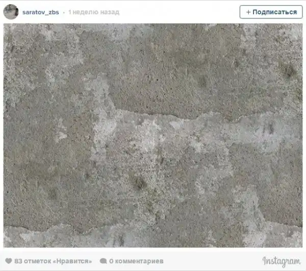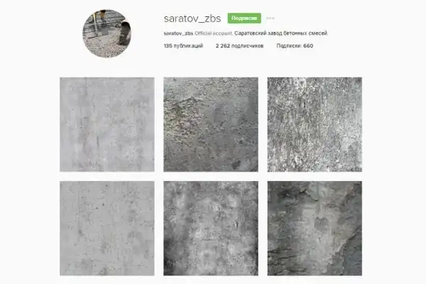 В профиле всего 135 фотографий, и на каждой из них — бетон. Без комментариев и объяснений, просто с хештегами. В описании сказано, что это официальный аккаунт Саратовского завода бетонных смесей (видимо, так расшифровывается аббревиатура zbs в имени), однако такого завода в Саратове не существует. Medialeaks позвонил на три разных бетонных завода, но ни на одном не подтвердили, что ведут такой профиль.