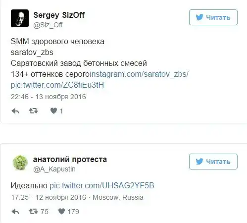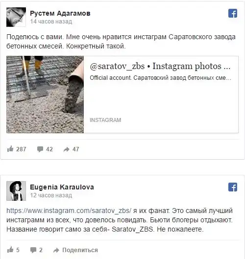 В субботу и воскресенье о бетонном аккаунте стали писать многие в фейсбуке, в том числе популярные блогеры вроде Рустема Адагамова. Пользователи принимают арт-проект за страницу реального завода.