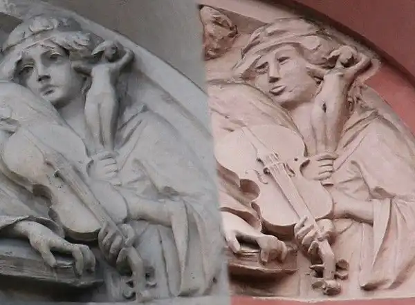 Очень похожая история произошла в Санкт-Петербурге. Здесь от некачественной реставрации пострадал барельеф с нимфой музыки по адресу улица Восстания, дом 19, где расположен доходный дом церковного деятеля Пантелеймона Бадаева постройки начала 20-го века. К сожалению, по оценкам специалистов, первоначальный вид барельефу придать будет очень сложно.