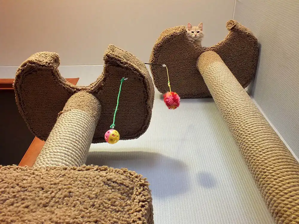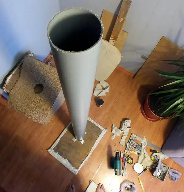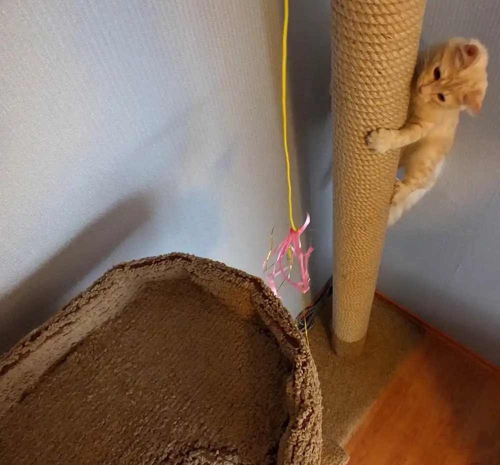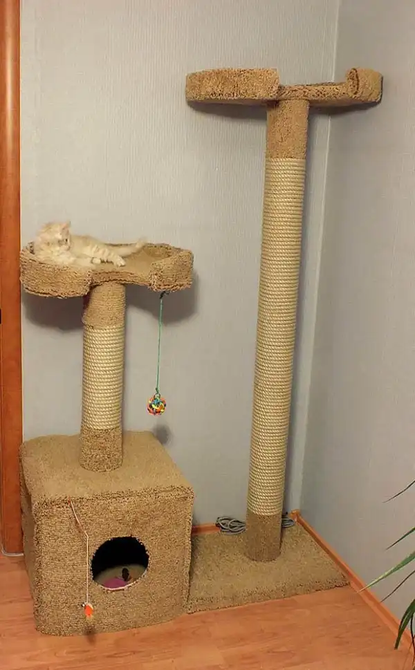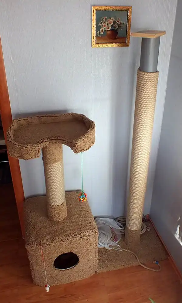 В техзадании были несколько условий: чтобы не царапался пол, чтобы было крепко, так как котенок грозил уже через год превратиться в огромного кота породы мейкун, ну и, по возможности, красиво.
