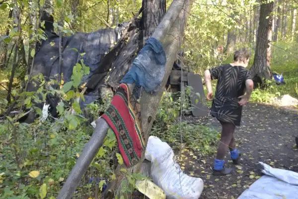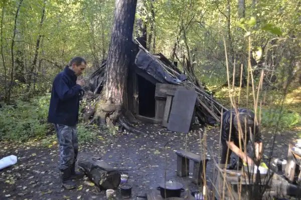 Я бы никогда не поверила, что можно прожить в шалаше с мужчиной 10 лет! И не где-нибудь в жаркой стране, а в лесу!!! На Урале! Я не верила в пословицу " С милым и рай в шалаше". Оказывается есть люди, которые прожили в лесу уже 10 лет вот в таком шалаше , как на фото.