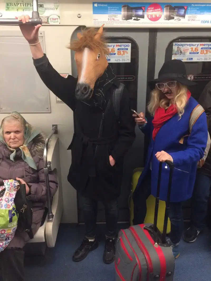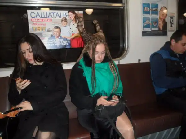 Очередная подборка фотографий странных и модных персонажей, которых можно встретить в российском метро.