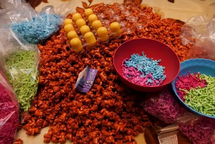 Мало кто знает, в каких условиях подчас происходит расфасовка игрушек для любимых всеми детьми шоколадных яиц Киндер Сюрприз. Перед вами фото, которые сделаны в доме одной румынской семьи, которая занимается фасовкой деталей по футлярам. Эта семья ежедневно работает по 13 часов, причем вместе со взрослыми работают и дети. За 1000 заполненных футляров работники получают 20 лей (4,8 доллара США). Заполненные футляры отвозятся на завод в городе Карей, где потом они оказываются внутри шоколада.