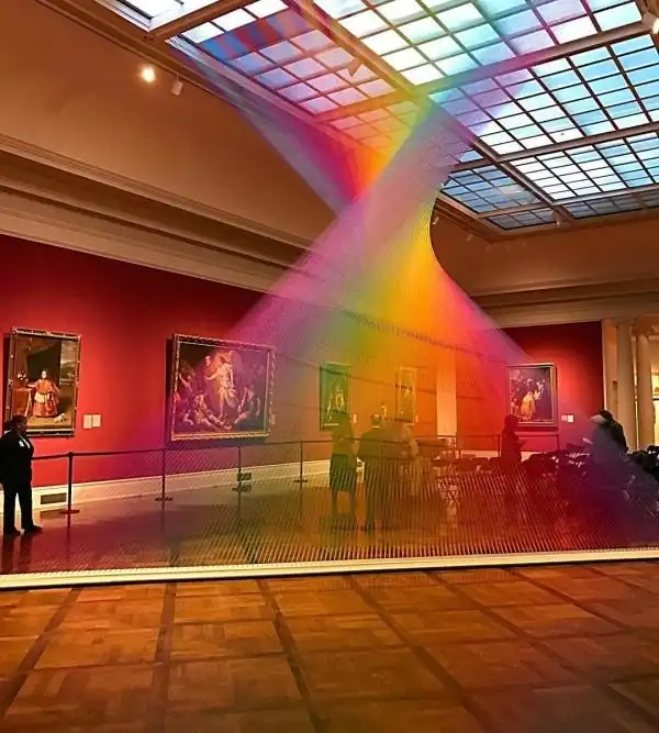 Новой зрелищной инсталляцией музея искусств города Толидо, штат Огайо, США, стала радуга мексиканского художника Габриэля Доу (Gabriel Dawe). Экспонат под названием Plexus no. 35 состоит из тысяч разноцветных нитей, натянутых между потолком и полом галереи. Благодаря окну над арт-объектом, на нити попадает солнечный свет, что усиливает эффект радуги. Инсталляция, которая уже успела стать одной из местных достопримечательностей, пробудет в музее до 22 января 2017 года.