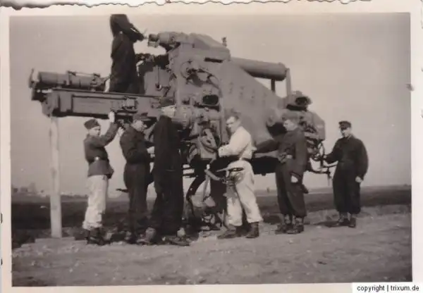 Сборка зенитного орудия "12.8cm Flak 40" на стационарной позиции.
