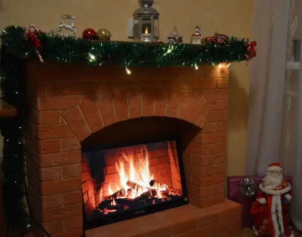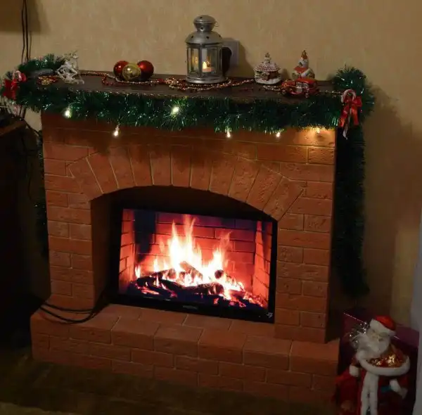 Для имитации огня поставил монитор, 23". Провода в дальнейшем будут спрятаны.