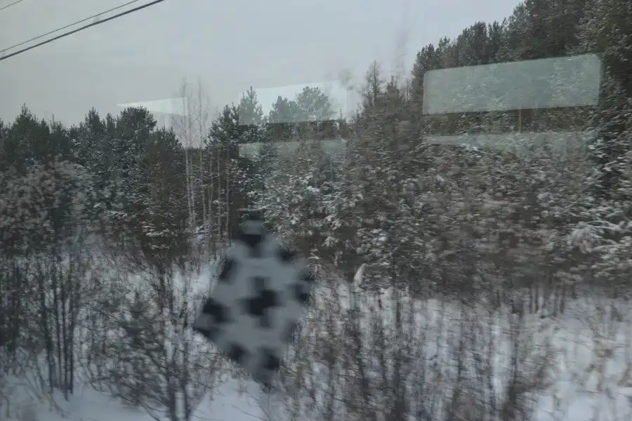 Самый частый пейзаж это заснеженные елочки, словно из сказки и снежные сугробы. Ощущение, как будто едешь в сказке.