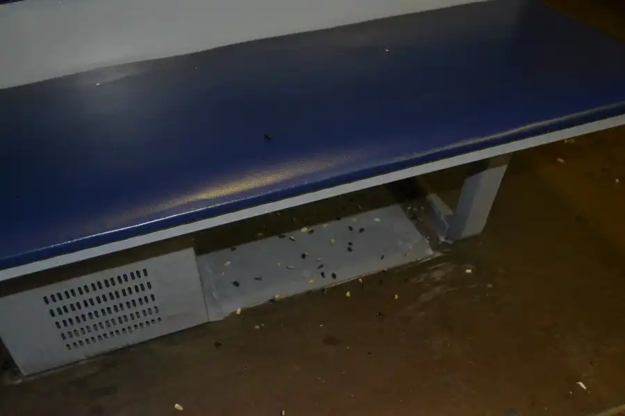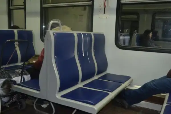 Электричка пустая. Видите под сиденьем семечки? Это первая утренняя электричка с предыдущей станции. Значит никто не убирал электричку со вчерашнего дня.