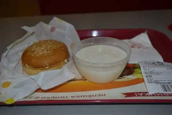 Иду куда-нибудь завтракать. До электрички два с половиной часа. В здании вокзала нахожу Куриное кафе. Это если перевести с английского название. Беру рисовую кашу и бургер с омлетом и сыром. Такой русско-американский завтрак. Никогда не ела гамбургер с омлетом внутри. Необычный вкус.