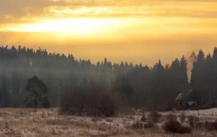 Утро уже наступило, люди давно проснулись, «включилось» и печное отопление в домах. Поселки задымили на многие километры.