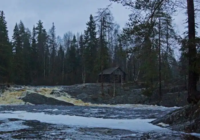 Когда-то тут находилась финская мельница, а теперь стоят русские коттеджи. Красивое место!