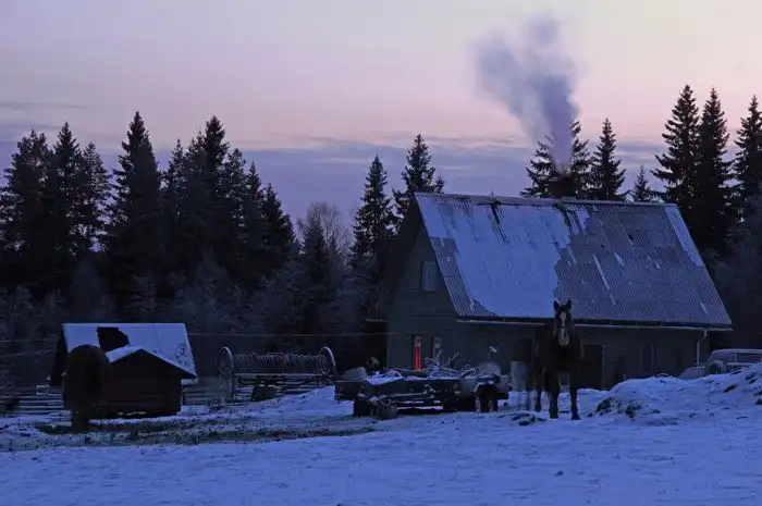 Знаете такую песню: «У леса на опушке, жила зима в избушке…»? Это про этот сказочный домик, который спрятался недалеко от дороги на границе 47 и 10 региона. Фото, вроде, ничего особенного, но какое-то по-зимнему теплое и уютное. Не смог проехать мимо такой красоты.