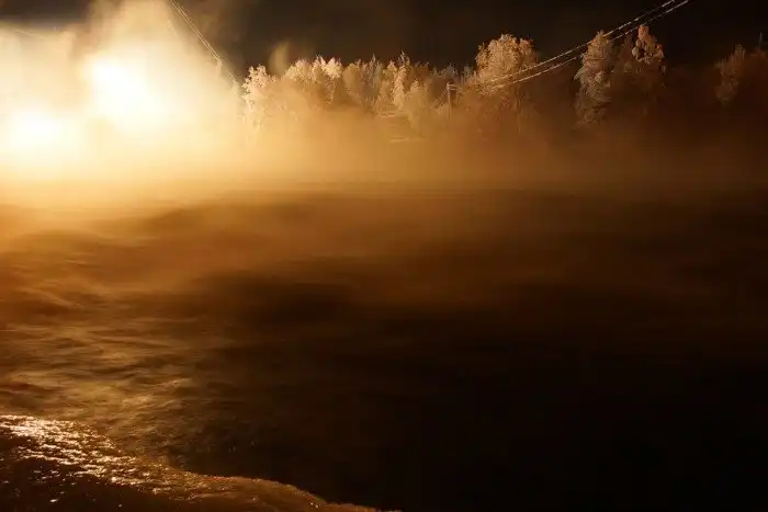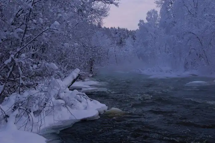По пути сделал небольшую остановку на реке Вуокса в Ленинградской области, которая на морозе парила, словно кипяток.