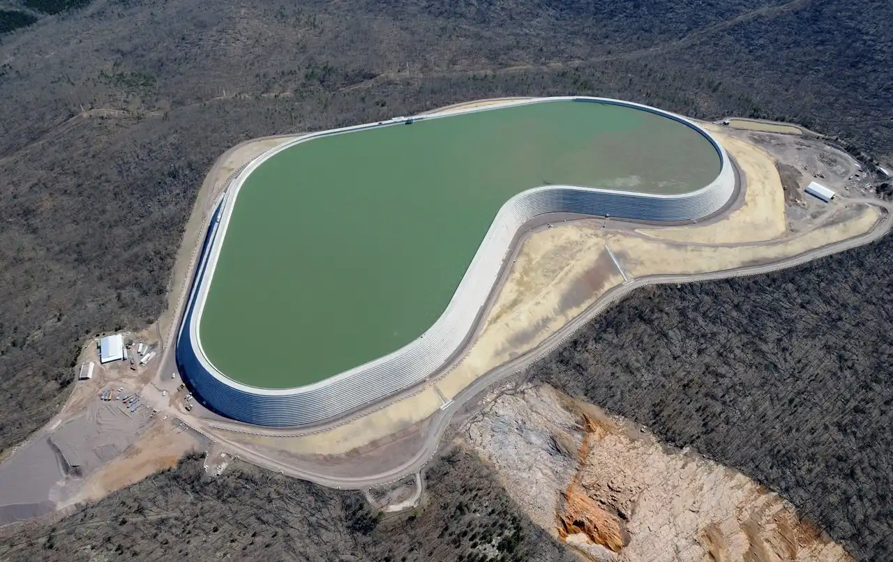 Гидроаккумулирующая электростанция по внешнему виду может быть неотличима от обычной ГЭС, стоящей на реке, а может представлять собой такой вот необычный резервуар, как станция Taum Sauk в Миссури. В любом случае – это большая территория и большие объёмы строительства.