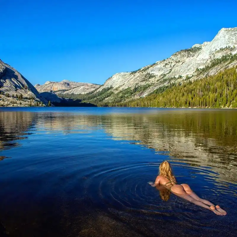 Модель отправилась в турпоход и делает пикантные снимки на лоне природы
