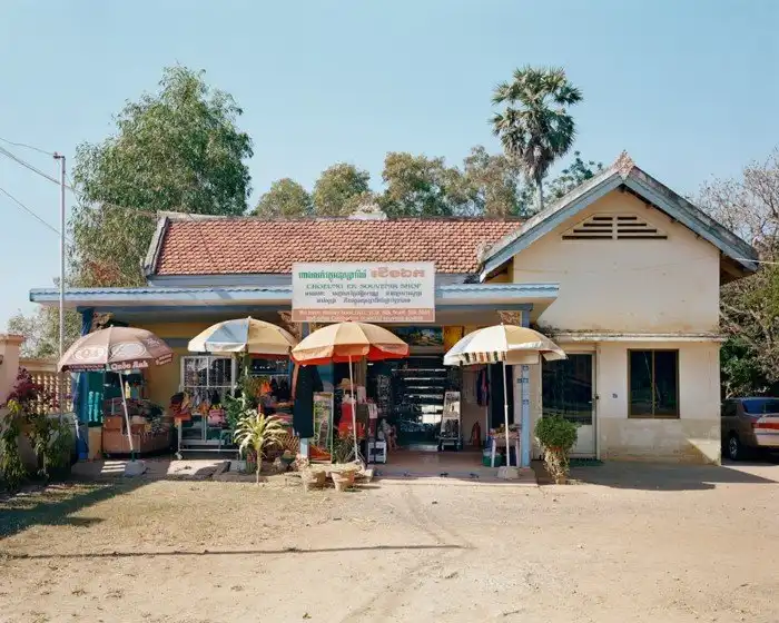 Чоенг Эк— участок бывшего сада, где растили орхидеи, и китайского кладбища в 17 километрах к югу от камбоджийской столицы Пномпень — самое известное из так называемых Полей смерти, где режим Красных Кхмеров — коммунистическое движение аграрного толка — казнил приблизительно 17 000 человек между 1975 и 1978 годами. После падения режима в братских могилах было найдено 8 895 тел. Сегодня Чоенг Эк— мемориал с буддистским храмом, прозрачные стены которого заполнены более чем 5 тысячами человеческих черепов. Кроме храма в этой туристической достопримечательности есть ямы, из которых выкапывались тела. Человеческие кости до сих пор можно разглядеть в грязи. За годы правления Красных Кхмеров, по разным данным, было убито от 1 до 3 миллионов человек. На фото — магазин сувениров.