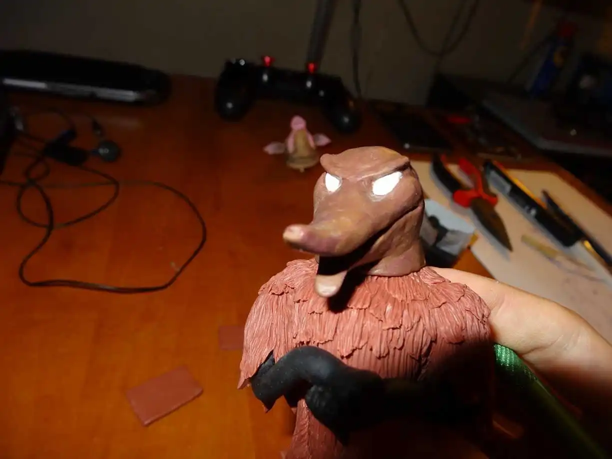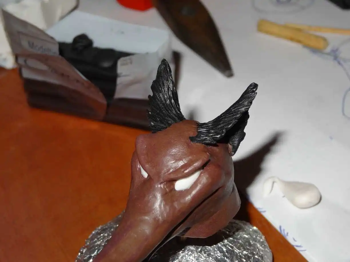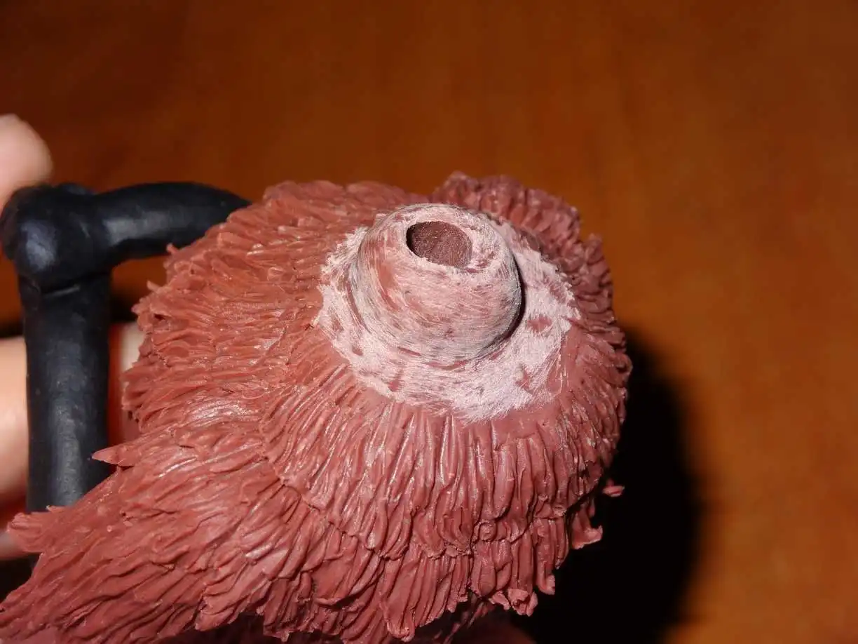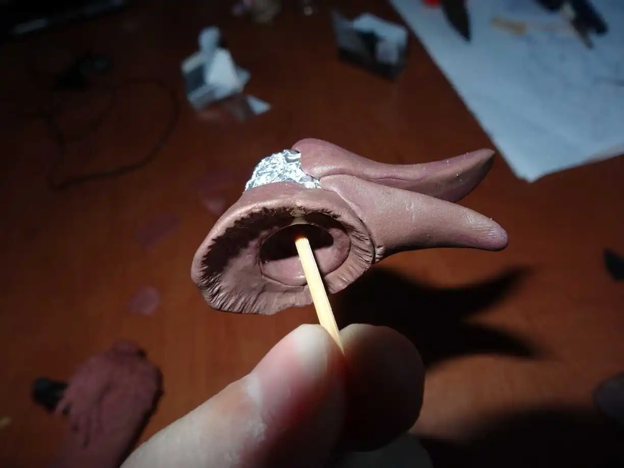 И тут я вспомнил что забыл вклеить усы. Для них ещё на моменте лепки сделал отверстия.