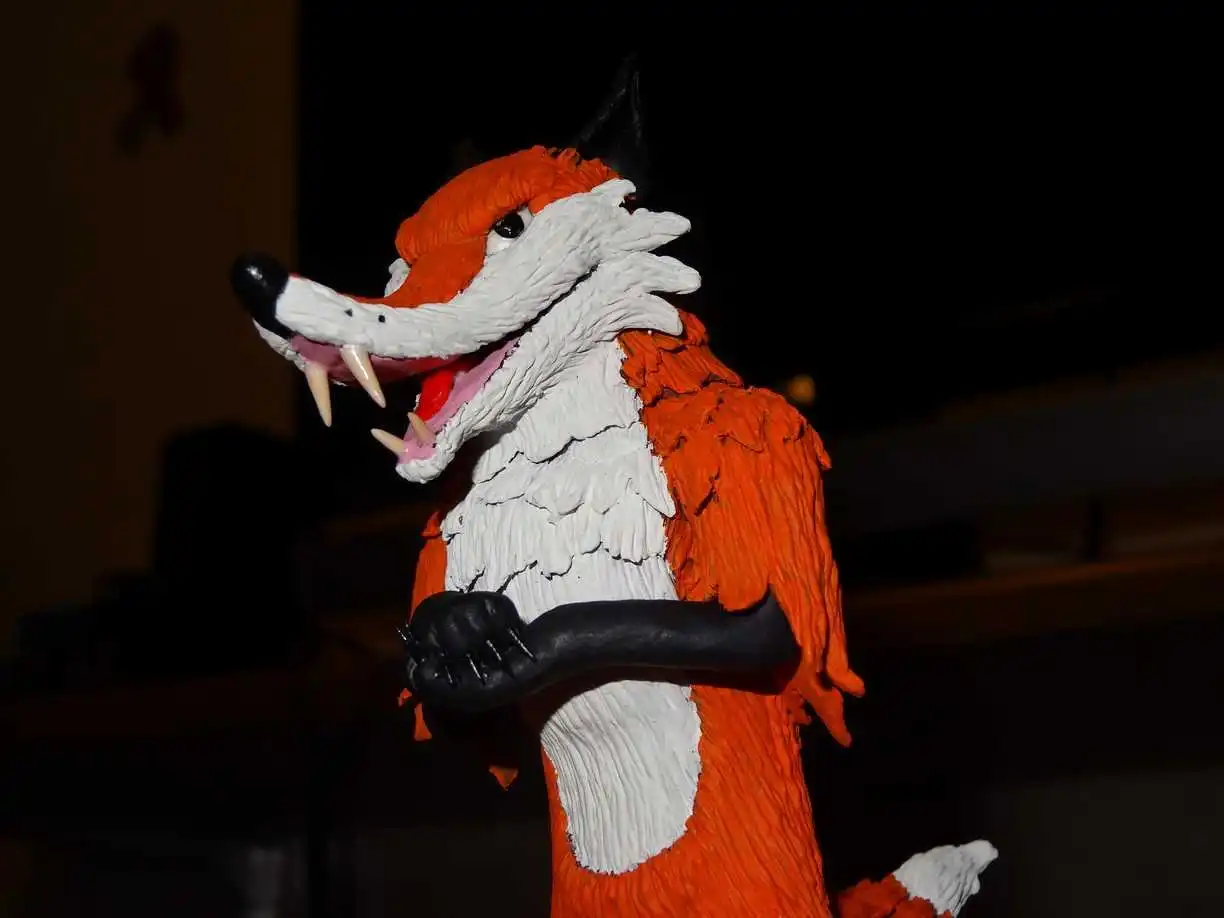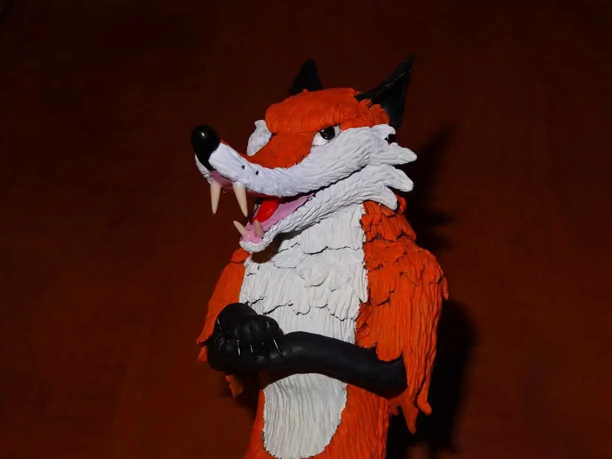Вот уже твёрдая фигурка стоит сама по себе. Обычно если фигурки людей с нормальными стопами стоят не падая это не вызывает удивления, но тут я удивился что на таких маленьких лапах лиса стоит без всякой опоры.