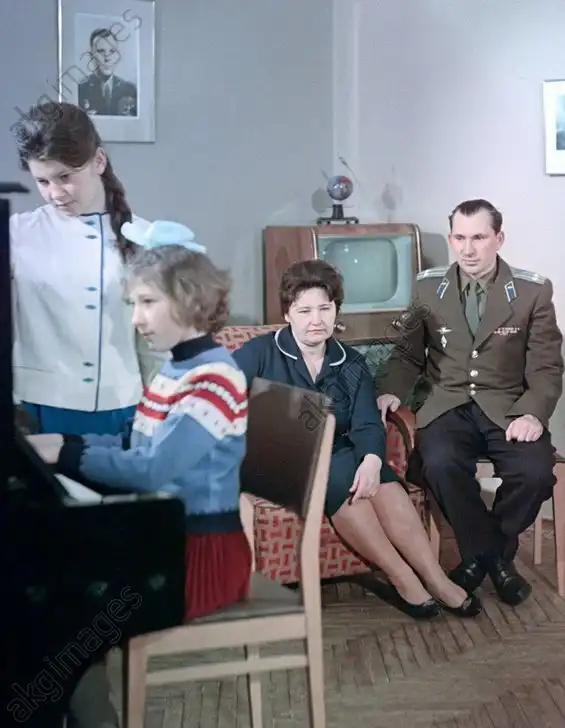 Космонавт Павел Беляев со своей семьёй дома, 1965 год: