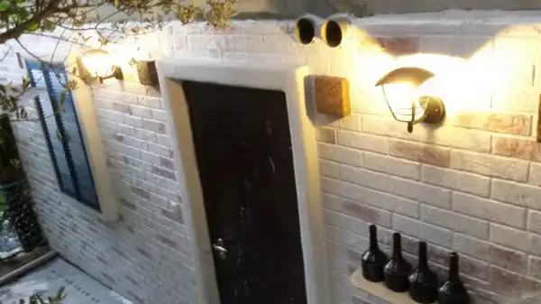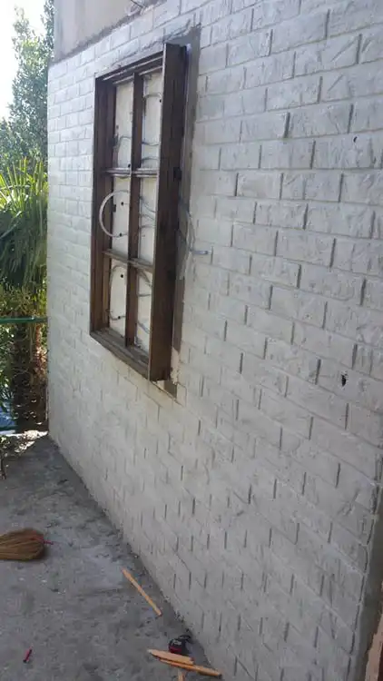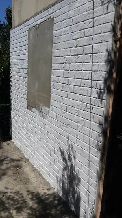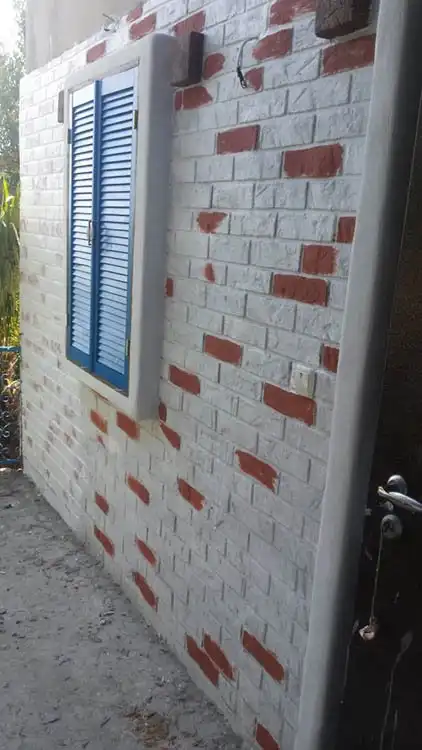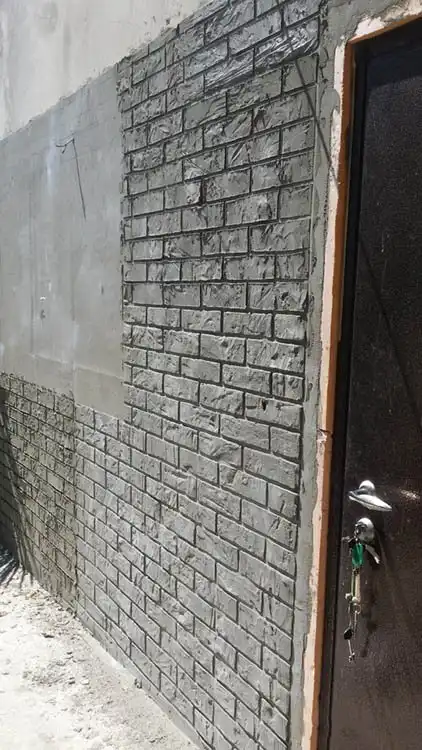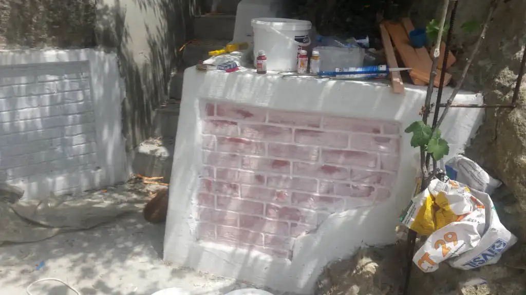 Отштукатурили мне джамшуты фасад дачи и стояла она так пару лет. Нашел в этих ваших интернетах идею, декорирование под кирпичную кладку. Так как стены очень кривые, решил состаривать «молодой» фасад.