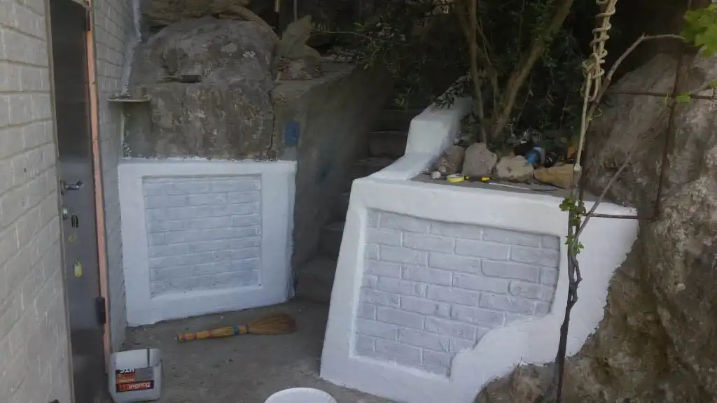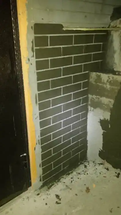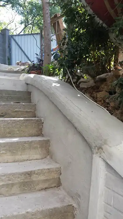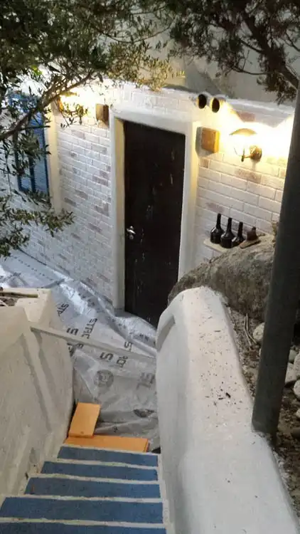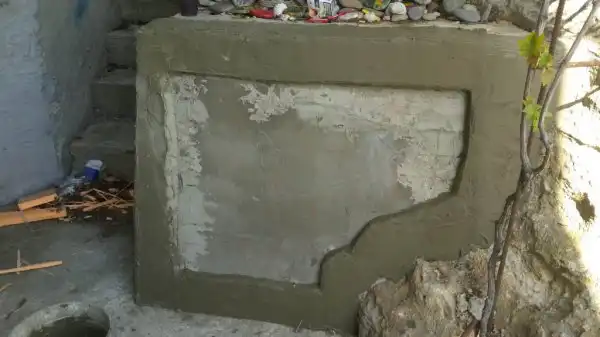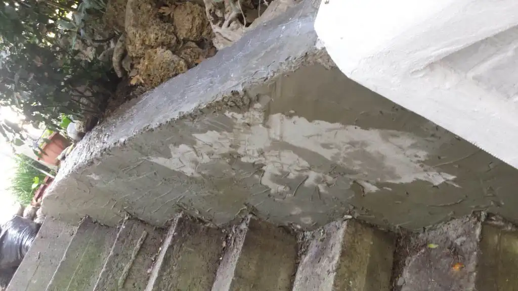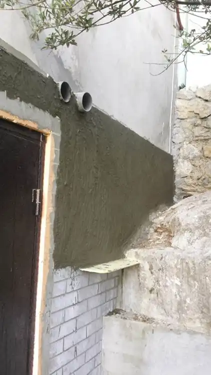 Ничего не отпадет, клей затем штукатурка СТ 29 для наружных работ.гидроизоляция, СТ116 и еще краска на стенах латексная, а на ступенях палубная для кораблей.