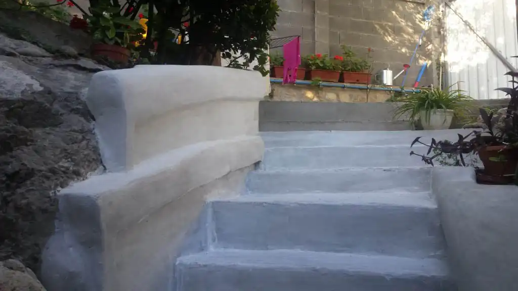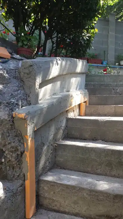 Так джамшуты захренячили мне потемкинскую лестницу из бетона, с разной высотой ступеней и кривыми стенами т.к. выдавило опалубку к чертям. Решил делать и лестницу