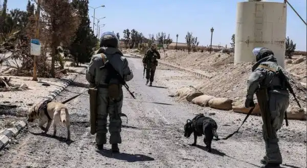 Я смотрел на экран и видел обычную с точки зрения боевой работы службу саперов. Буднично и без какой-либо помпы командир группы показывал самодельные фугасы, которые были только что сняты на водо-насосной станции Алеппо. Рядом лежали "заряженные" пластиковые бутылки, обрезки труб, цинки из-под боеприпасов с засыпанными стреляными гильзами пластинами пластида. И лежащая на заднем плане уставшая до безобразия собака.