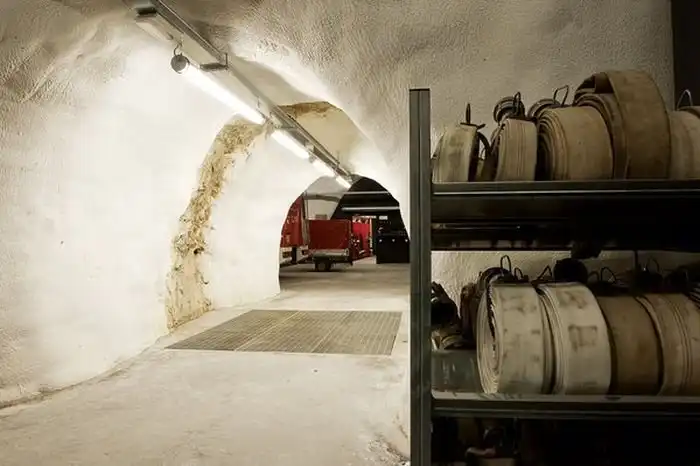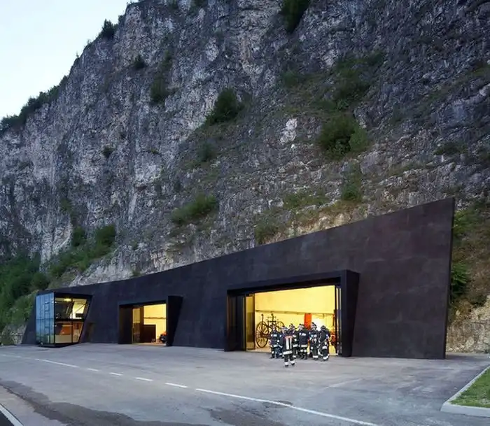 Пред вами одна из самых необычных пожарных частей мира, которая находится в небольшой итальянской коммуне Магре-сулла-Страда-дель-Вино. Административное здание и ангары для машин находятся прямо в скале, что делает эту пожарную часть не похожей ни на одну из тех, что вам доводилось видеть ранее.
