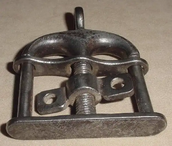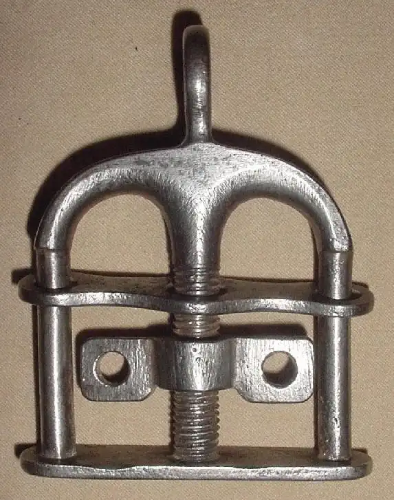 Девайс конца 17, начала 18 века. Французский. Для получения сведений от пытуемого путем закручивания его пальцев в приспособлении. В принципе, усе понятно, правда?