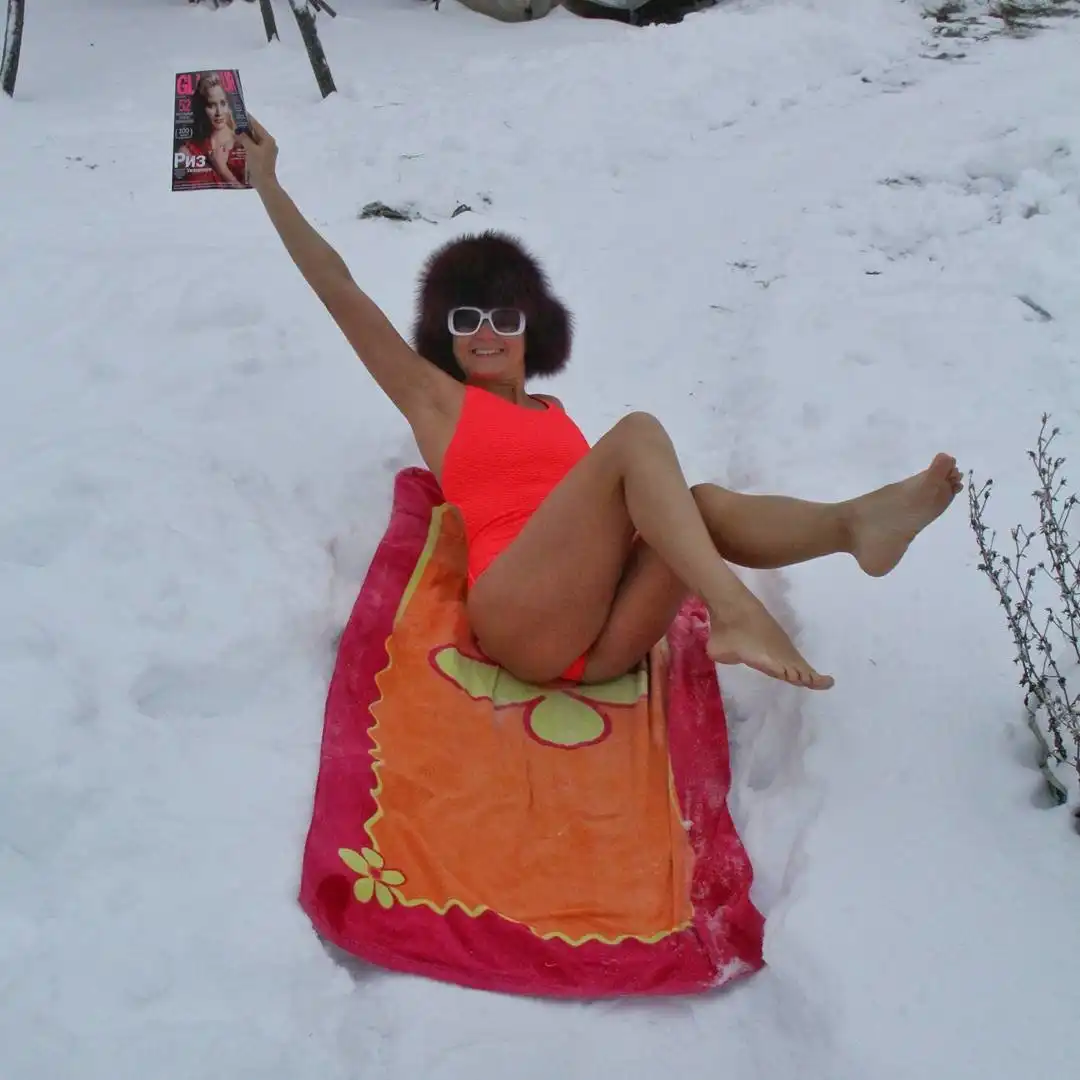 На снегу лежит Элен, будет как Софи Лорен!