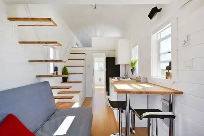 Перед вами очередной мобильный дом на колесах, который можно буксировать за автомобилем, тем самым постоянно меняя место проживания. В этом домике есть все, что необходимо для комфортной жизни, а его дизайн создает уют настоящего дома, заставляя забыть, что, по сути, это всего лишь фургон.